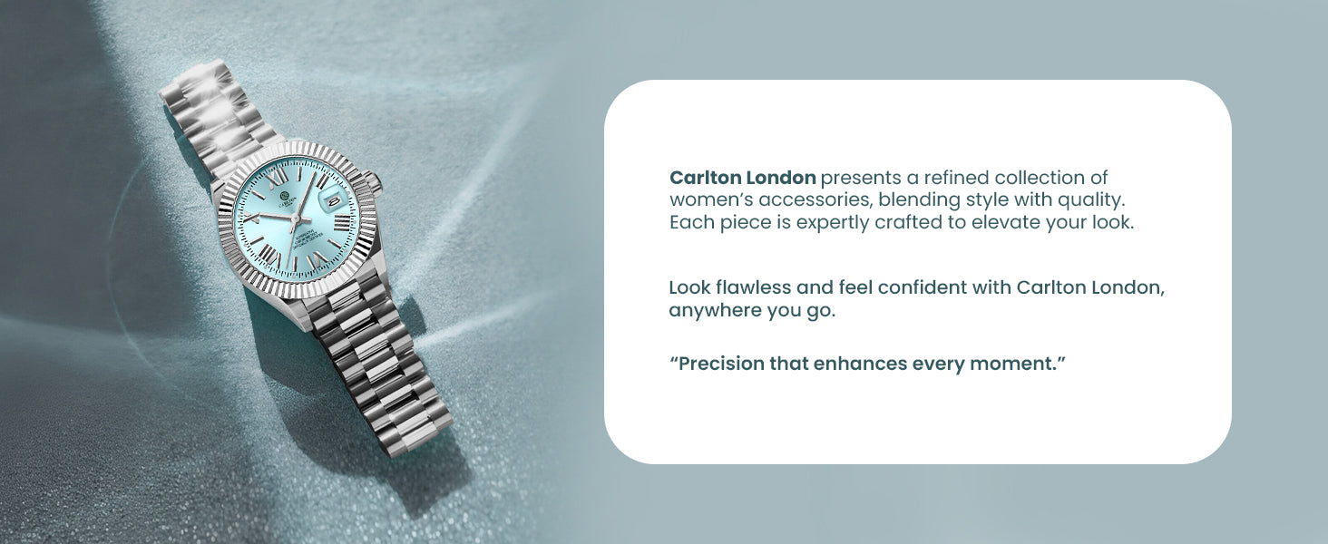 Carlton London watches are known for their stylish design, durability, and offer high quality materials , both classic and contemporary styles suitable for any occasion. Features often include stainless steel or leather straps, scratch-resistant glass, and water resistance, ensuring longevity and functionality. The watches are equipped with accurate quartz or automatic movements for reliable timekeeping. With elegant dials, some models include additional features like date displays or chronographs.